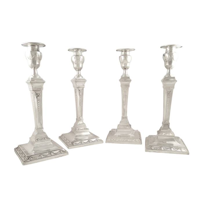 Set of 4 Antique Victorian Sterling Silver 12' Candlesticks 1883
