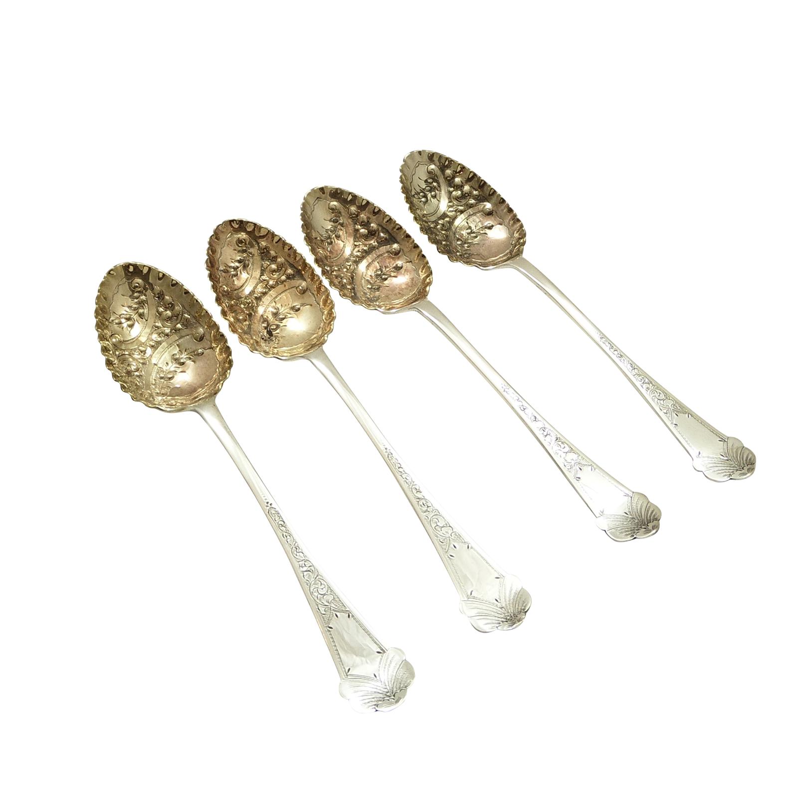 Set of 4 Antique Victorian Sterling Silver Berry Serving Spoons 1898