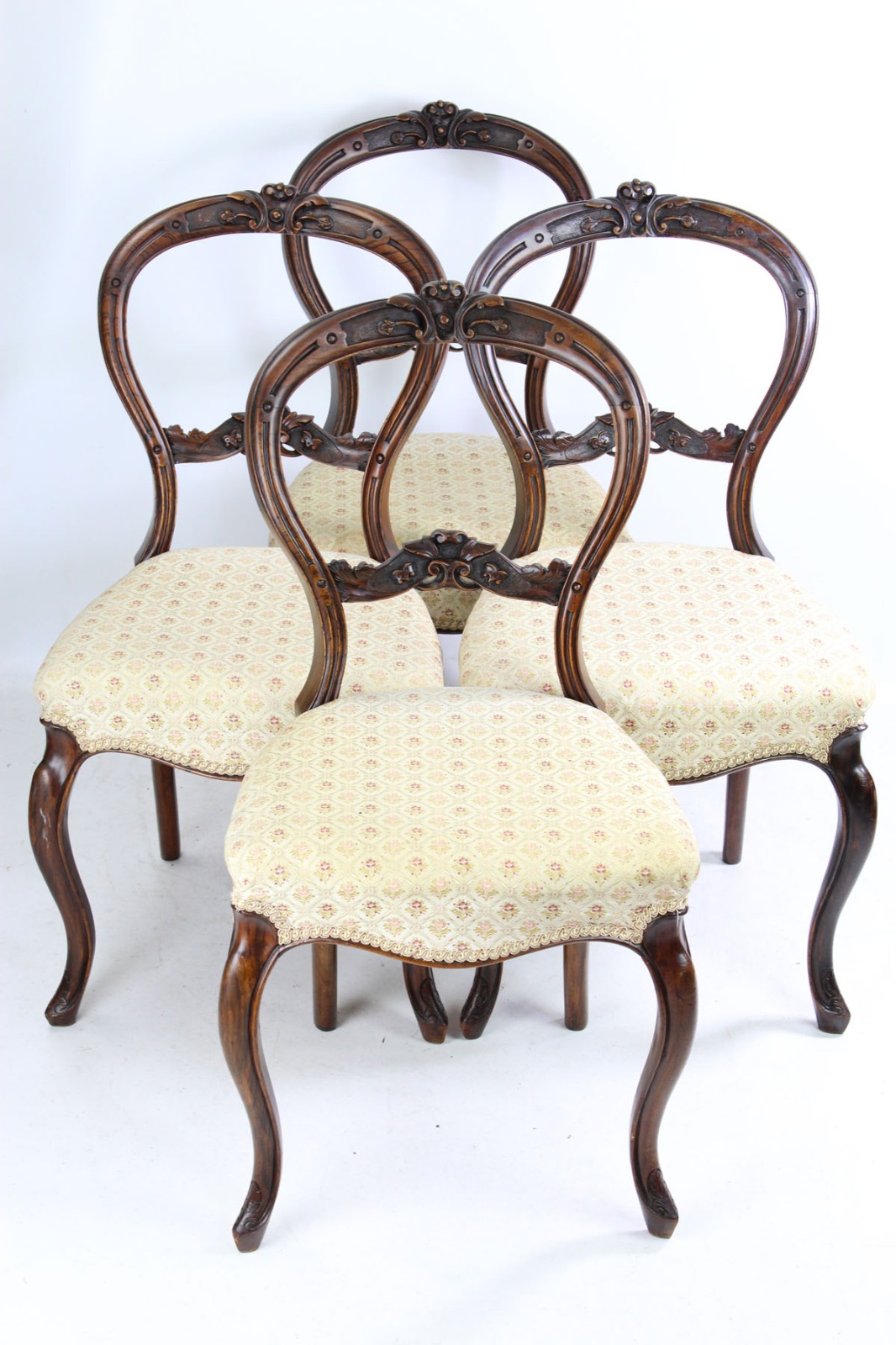 Set of 4 Antique Victorian Walnut Balloon Back Chairs (1 of 1)
