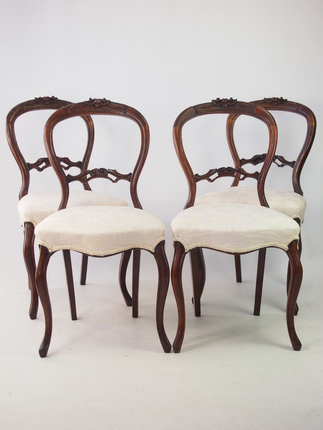 Set of 4 Antique Victorian Walnut Balloon Back Chairs (1 of 1)