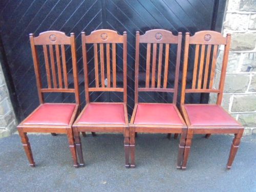 Set of 4 Antique Walnut High Back Dining Chairs / Kitchen Chairs c.1910