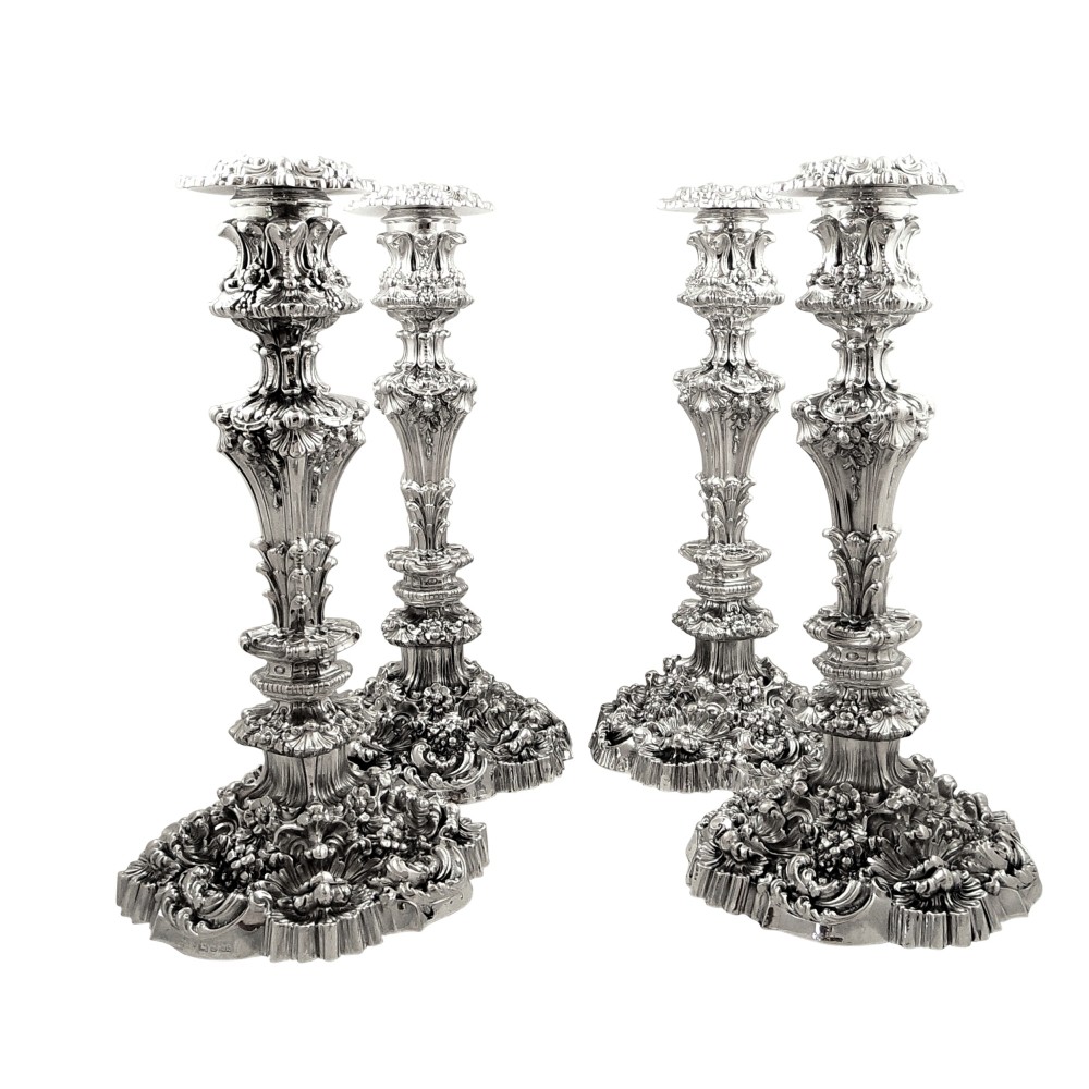 Set of 4 Antique William IV Sterling Silver 13' Candlesticks 1832