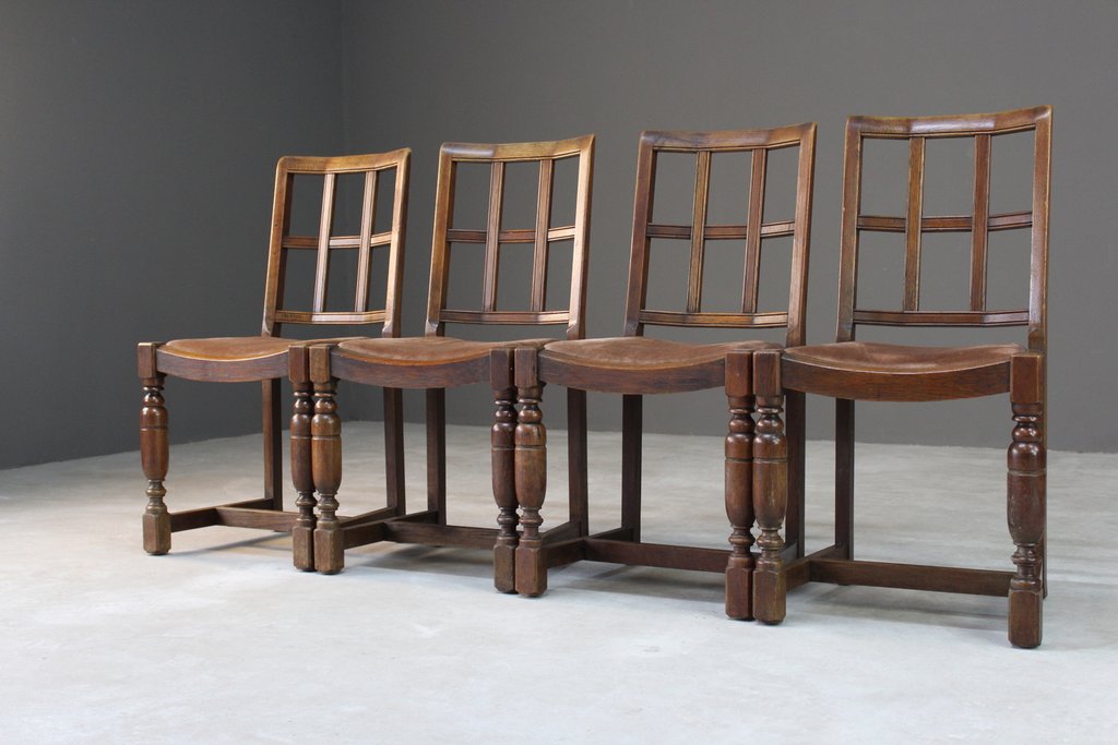 Set of 4 Arts & Crafts Heals Style Oak Lattice Back Dining Chair (1 of 1)