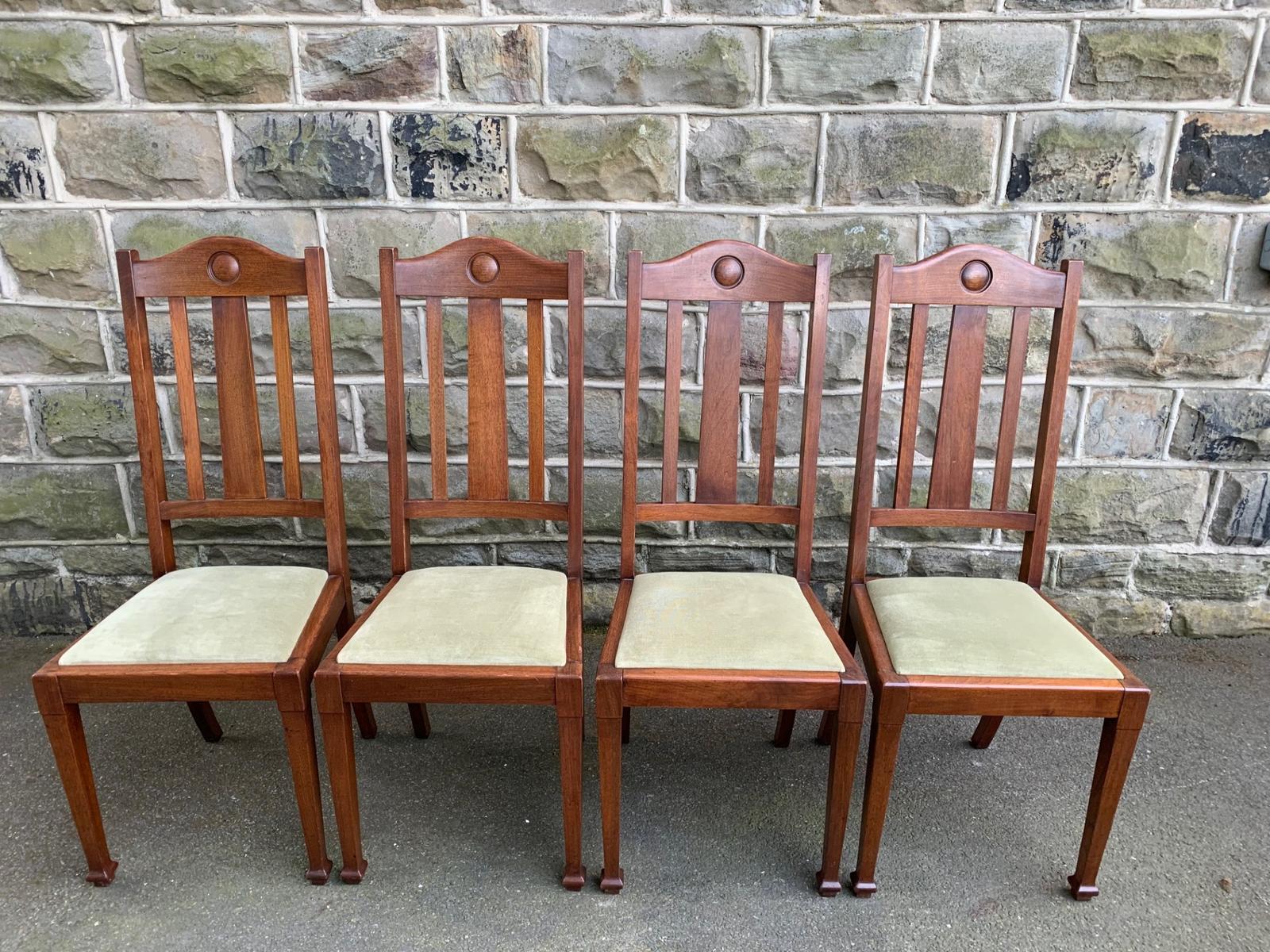 Set of 4 Arts & Crafts Walnut High Back Dining Chairs