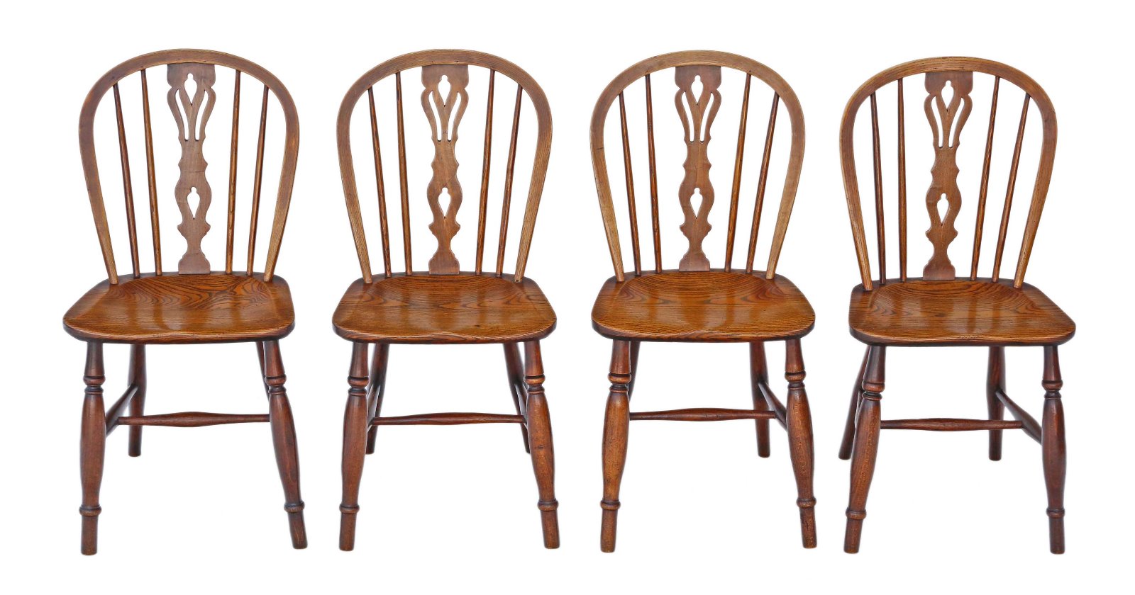 Set of 4 Ash Elm Beech c.1890 Kitchen Dining Chairs