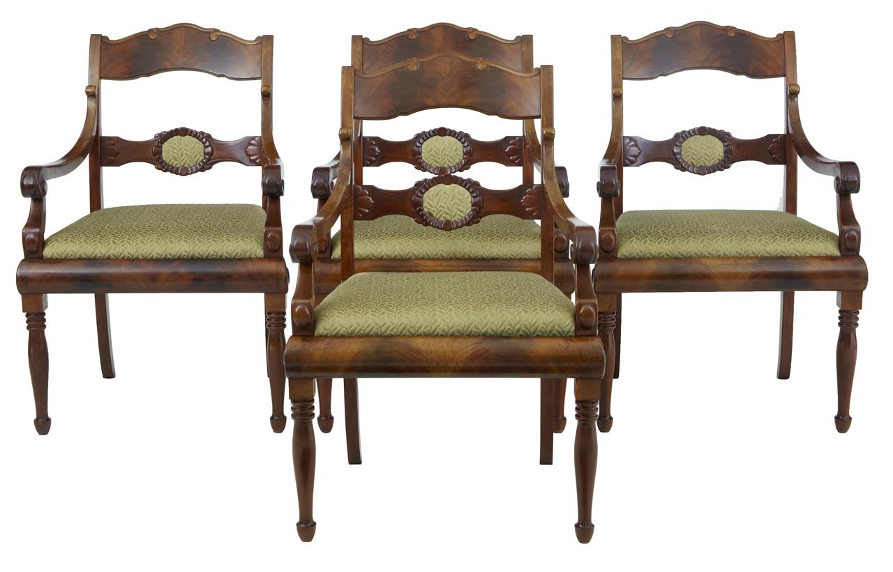 Set of 4 Early 20th Century Flame Mahogany Armchairs c.1910