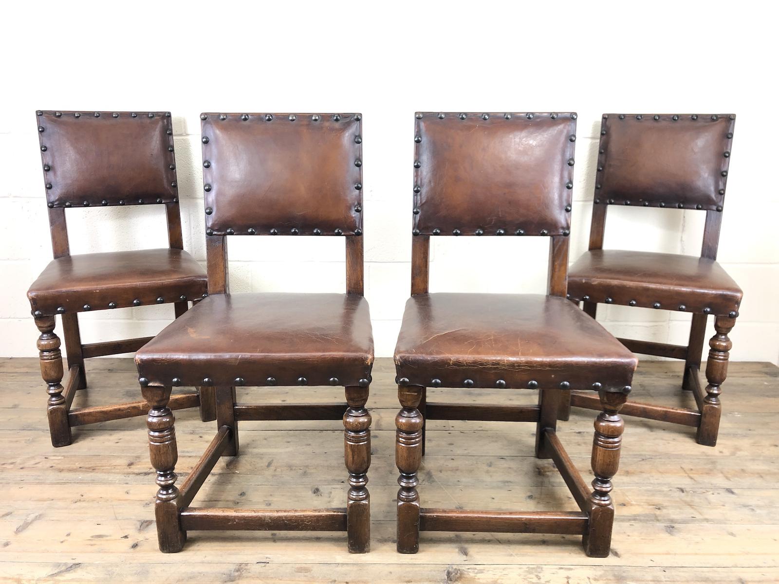 Set of 4 Early 20th Century Leather Dining Chairs (1 of 10)