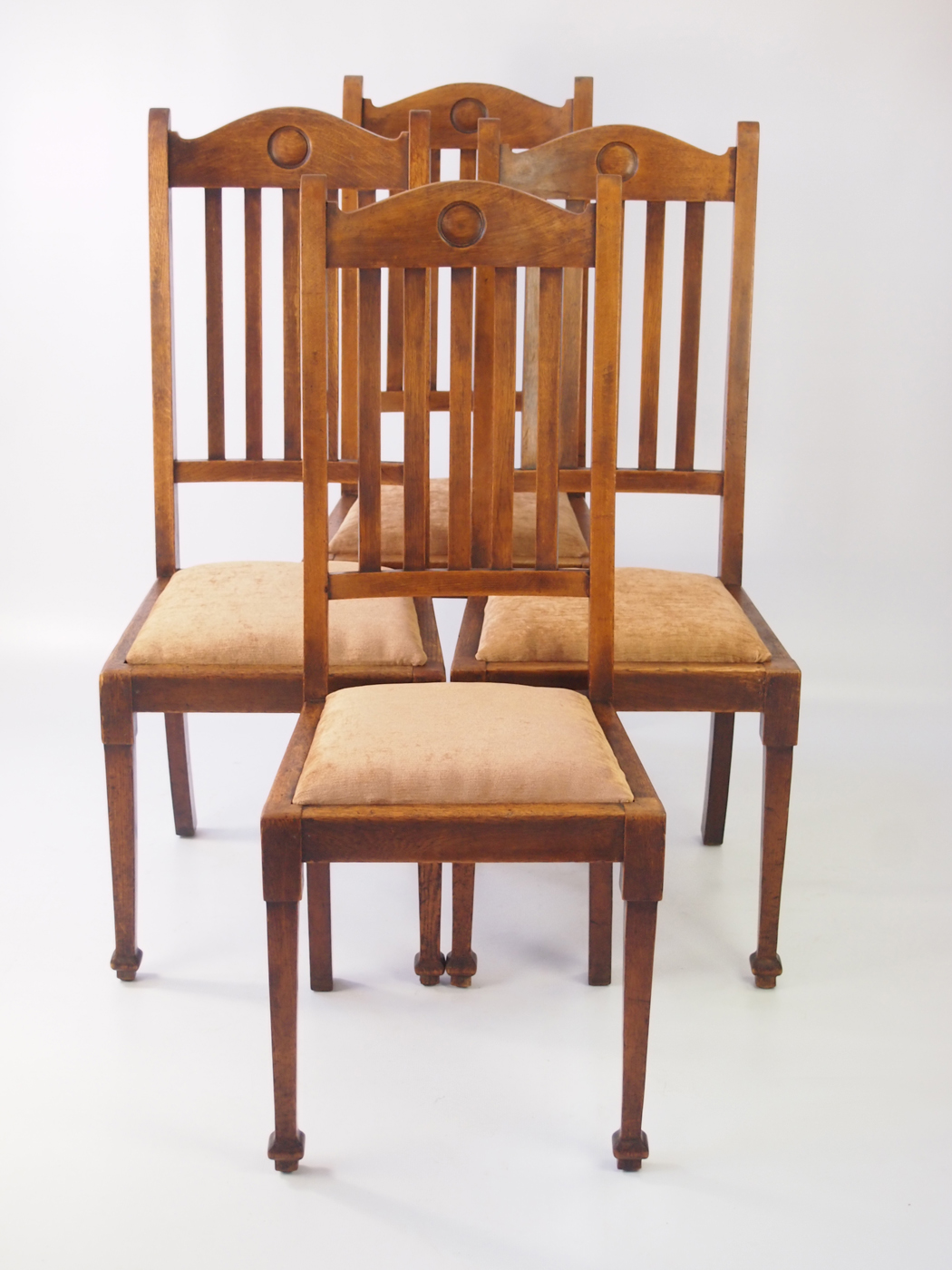 Set of 4 Edwardian Arts & Crafts Oak Chairs