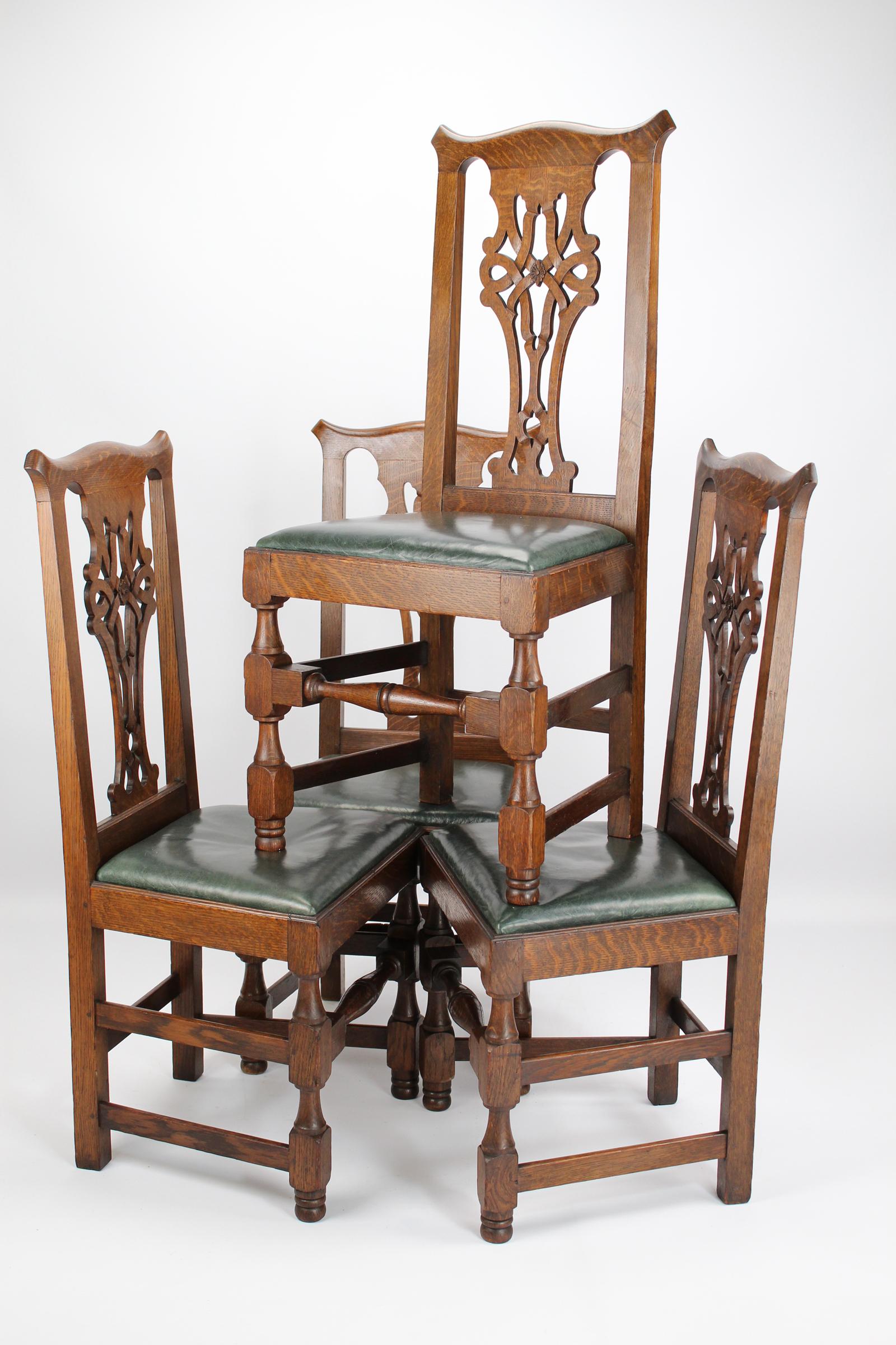 Set of 4 Edwardian Arts & Crafts Oak Dining Chairs