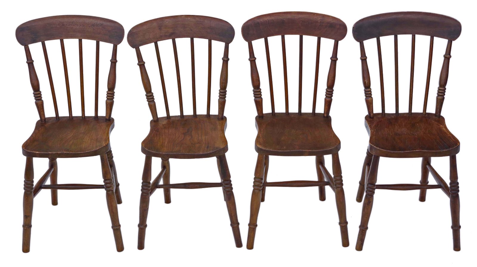 Set of 4 Elm & Beech Early 20th Century Kitchen Dining Chairs
