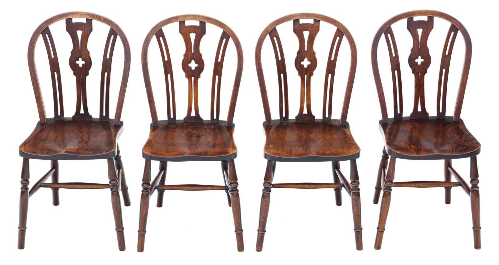 Set of 4 Elm & Beech Kitchen Dining Chairs c.1900 (1 of 7)