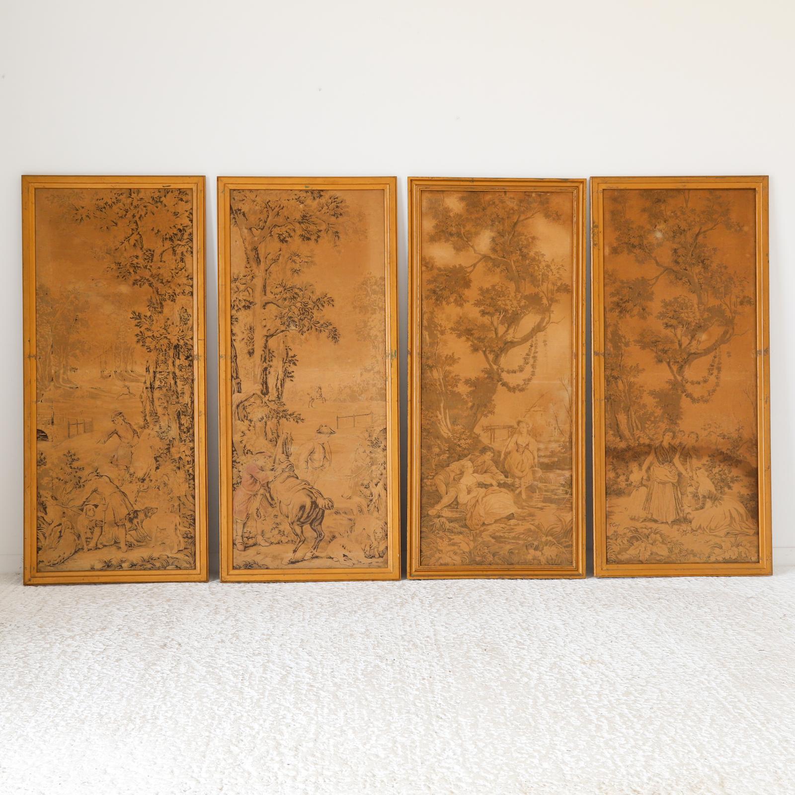 Set of 4 Framed Tapestry Wall Panels - Sepia Tone c.1930