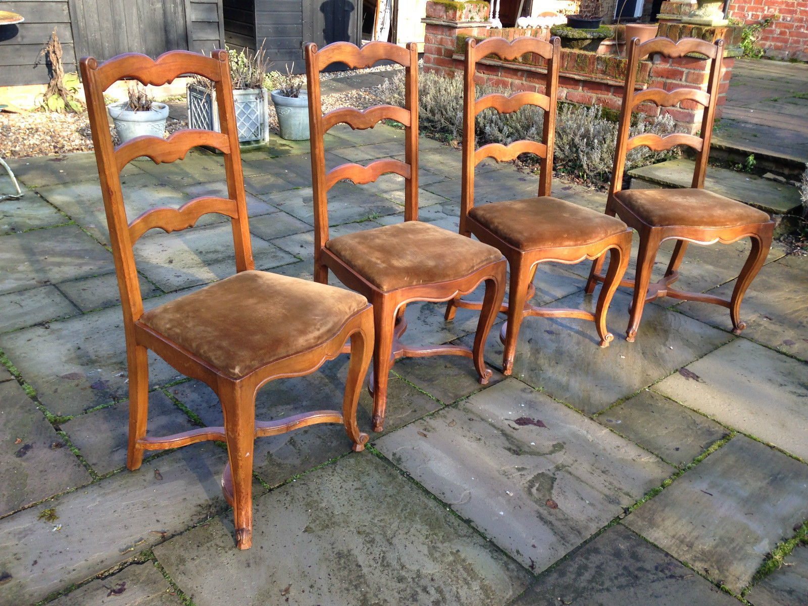 Set of 4 French Cherrywood Ladder-Back Dining Chairs