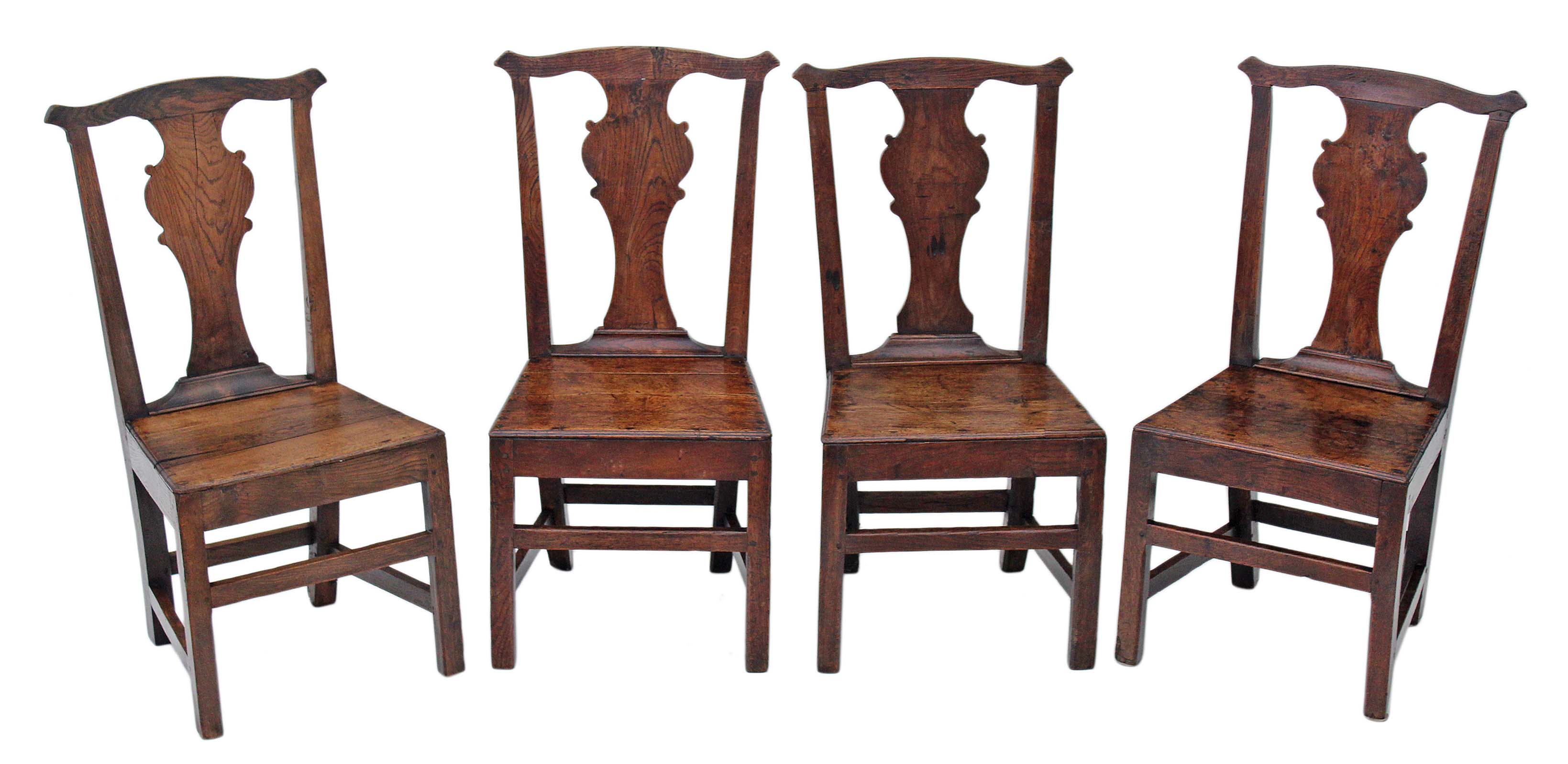 Set of 4 Georgian 18th Century Elm Country Dining Chairs