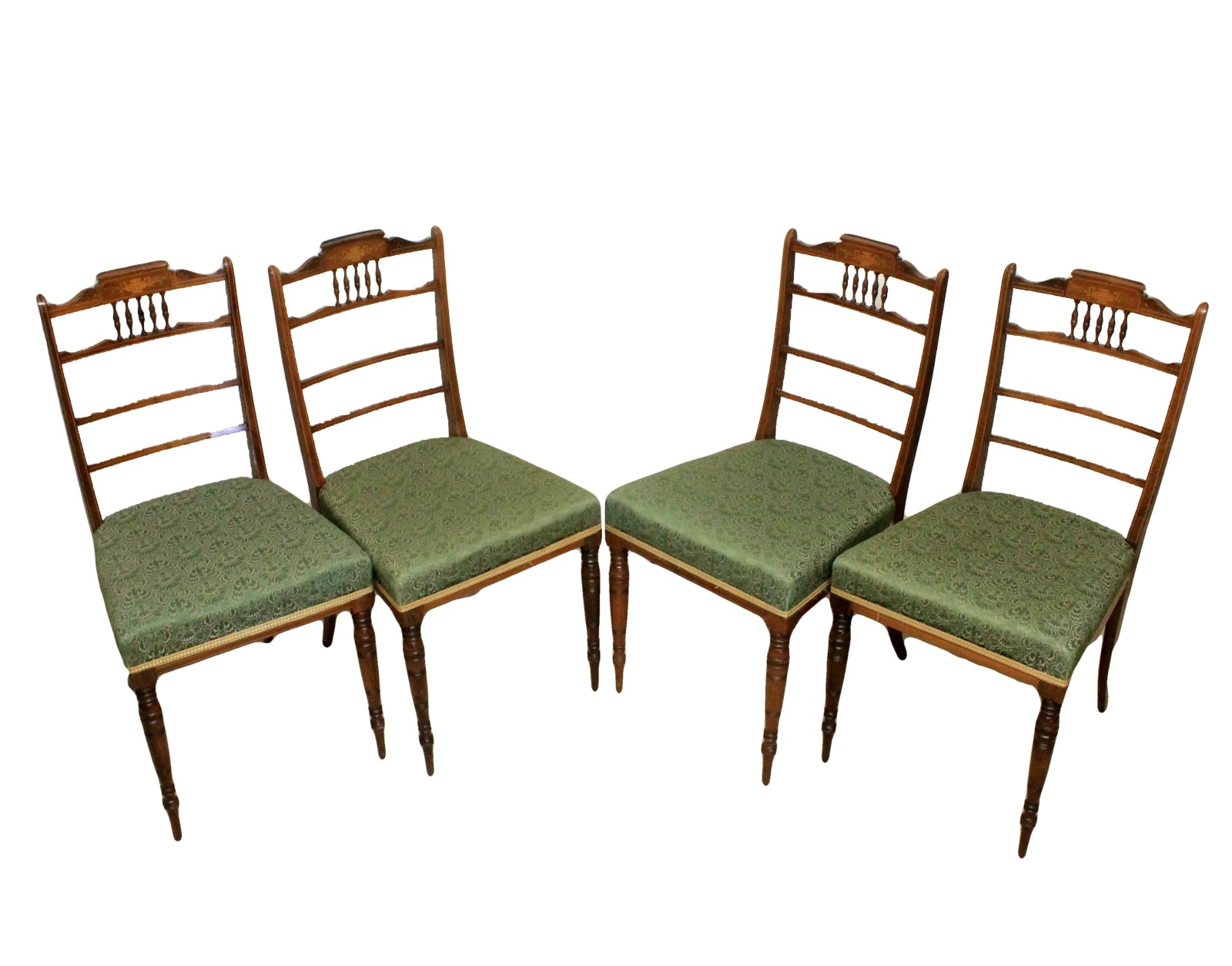 Set of 4 Late Victorian Antique Inlaid Rosewood Spindle Back Dining Chairs