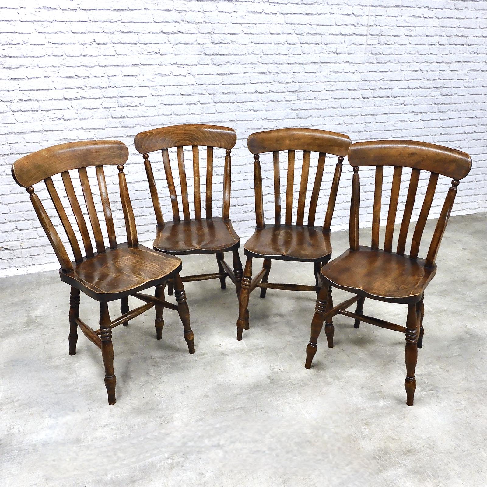 Set of 4 Lathback Windsor Farmhouse Kitchen Chairs