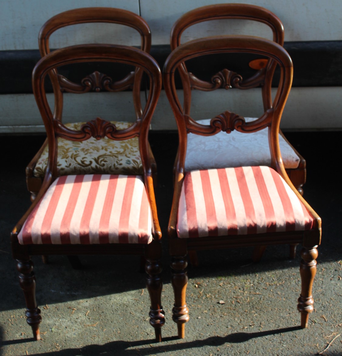 Set of 4 Mahogany Balloon Back Dining Chairs with Mixed Upholstery c.1910