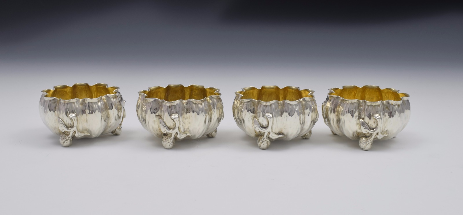 Set of 4 Naturalistic Scottish Silver Bark & Flower Bud Table Salts