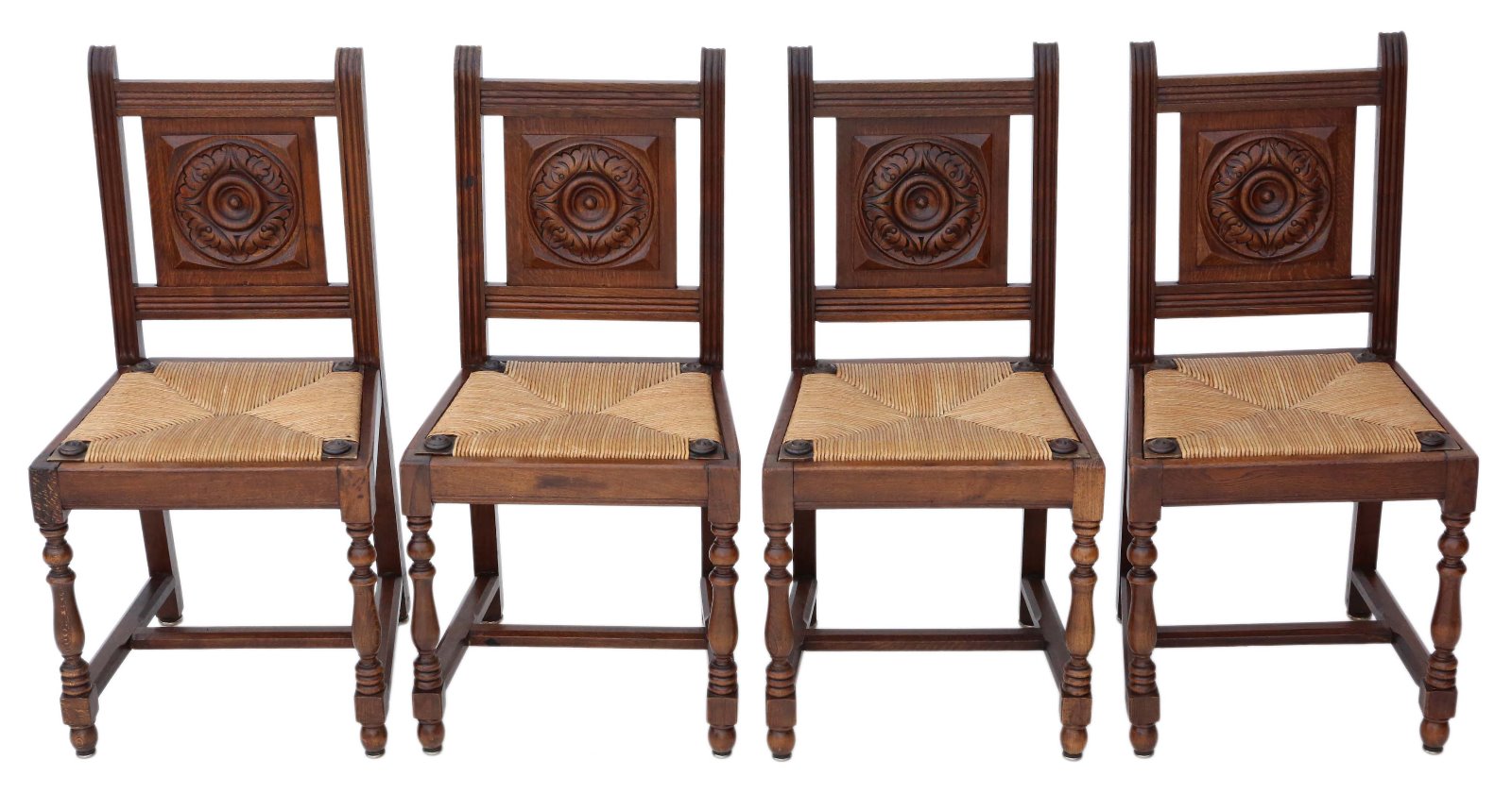 Set of 4 Oak Early 20th Century Kitchen Dining Chairs