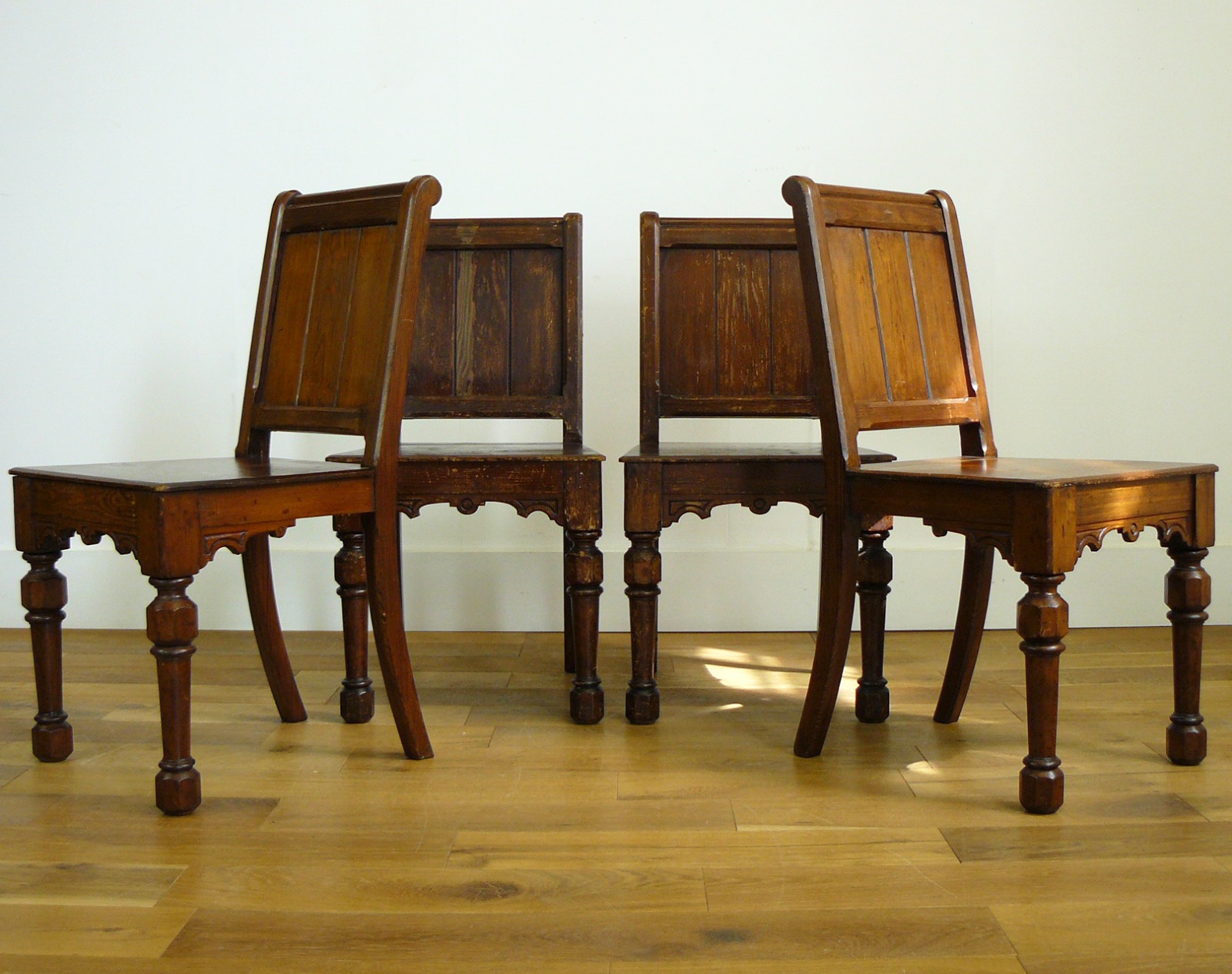 Set of 4 Pitch Pine Victorian Gothic Revival Chairs