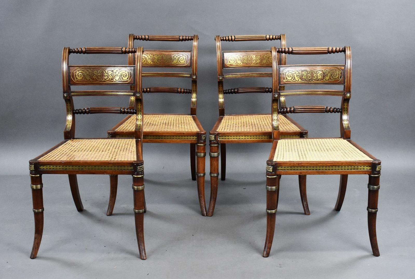 Set of 4 Regency Brass Inlaid Dining Chairs