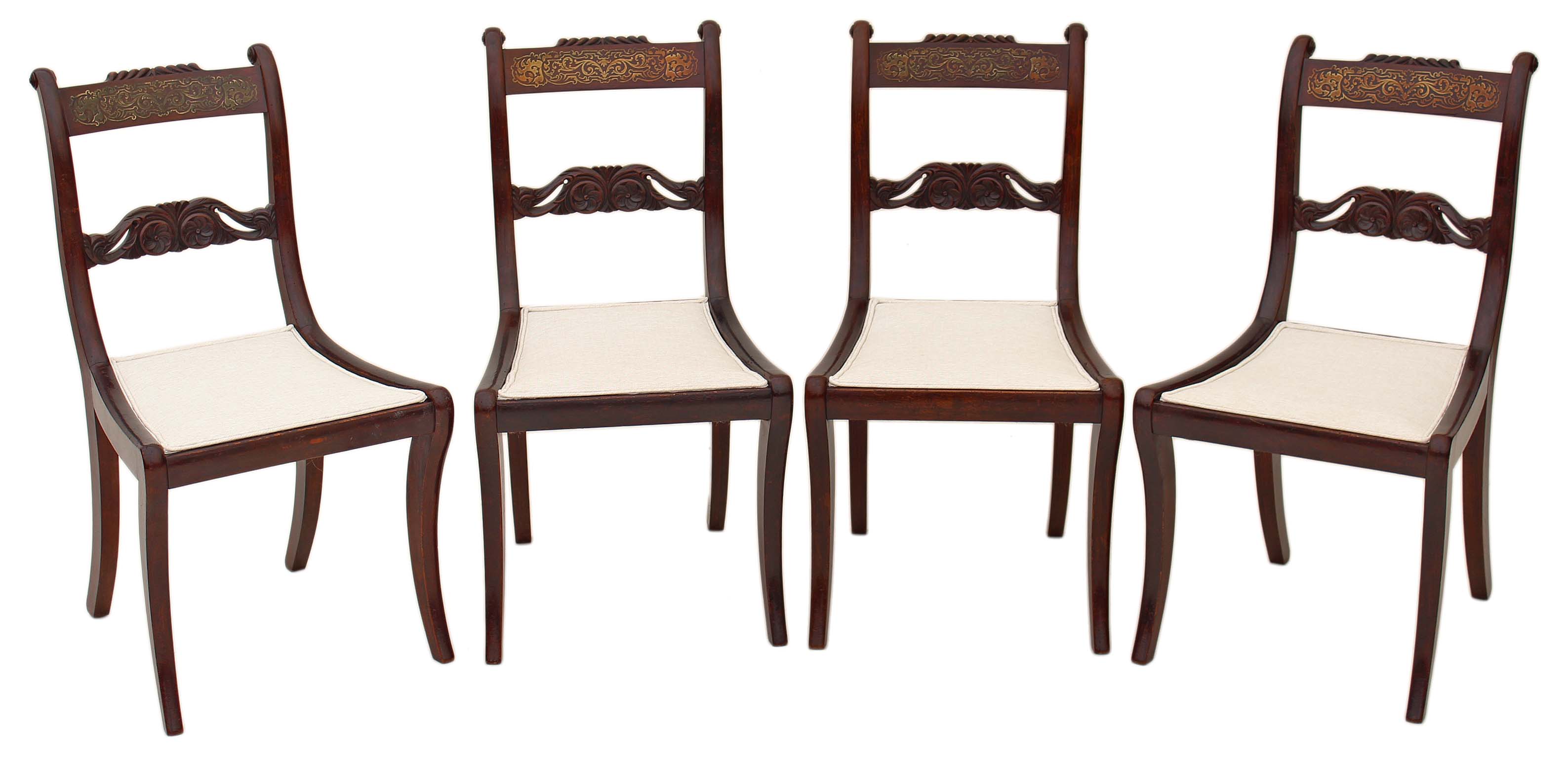 Set of 4 Regency Brass Inlaid Faux Rosewood Dining Chairs
