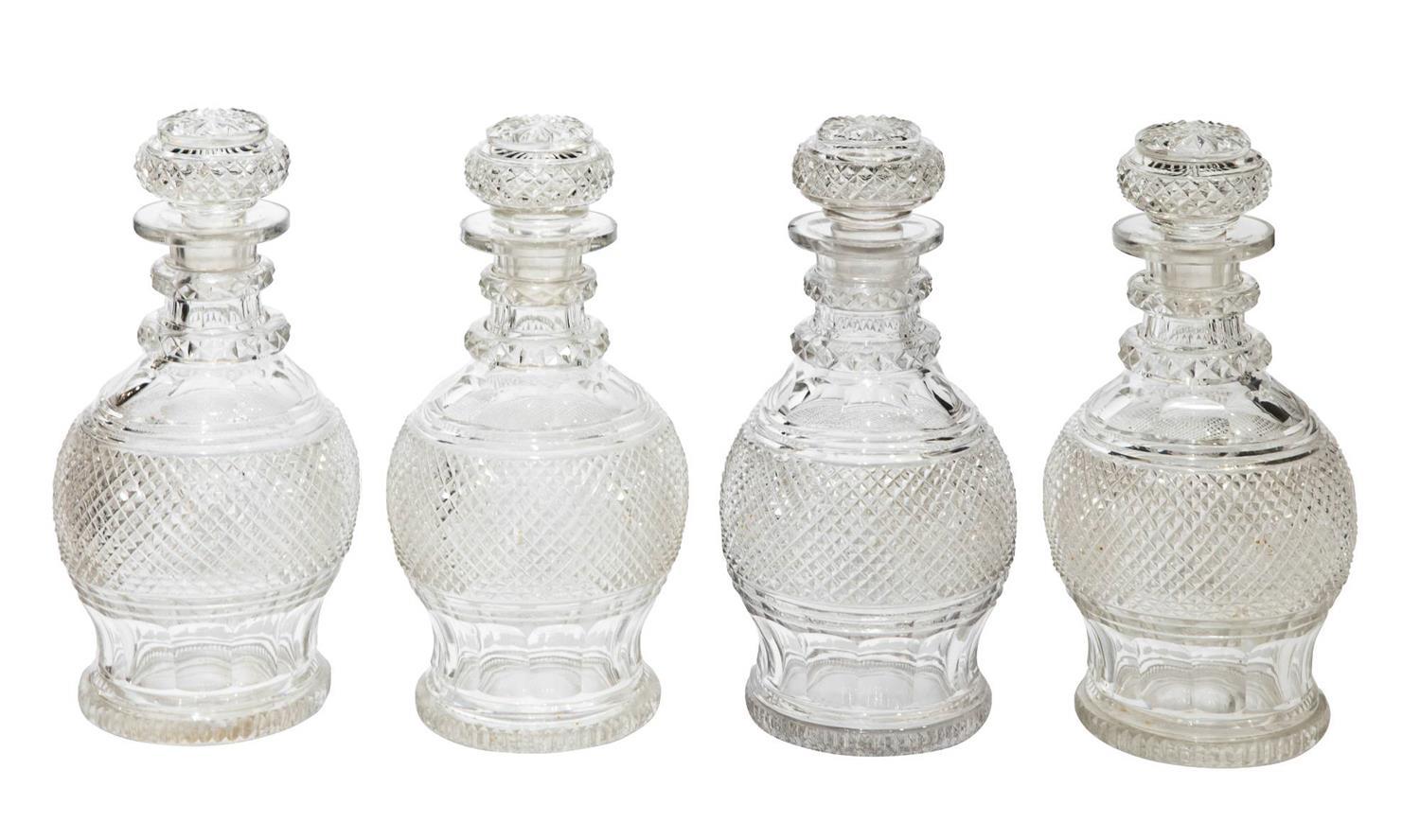 Set of 4 Regency Cut Glass Liquor Decanters