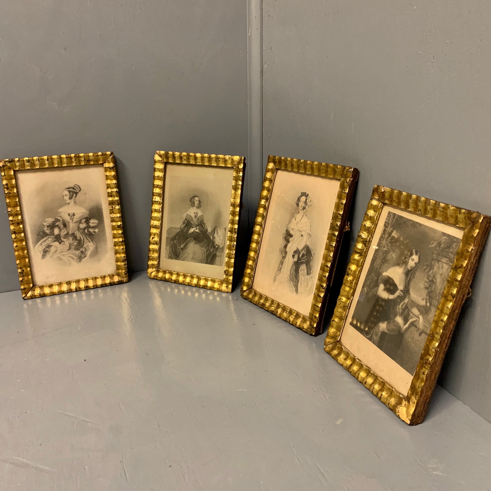 Set of 4 Regency Portraits in Rippled Gold Leaf Frames