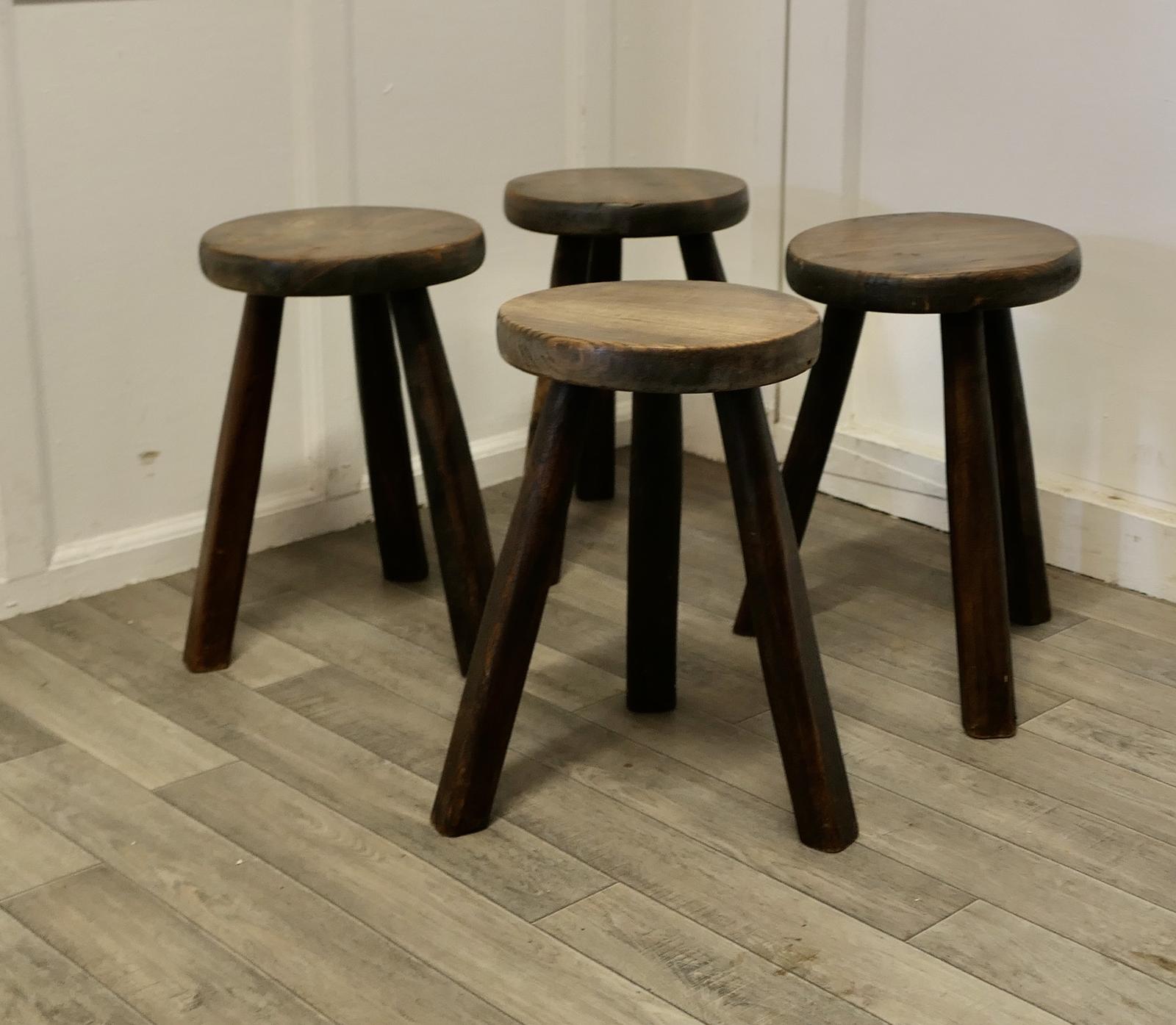 Set of 4 Rustic Hand Made Elm Farmhouse Kitchen Stools