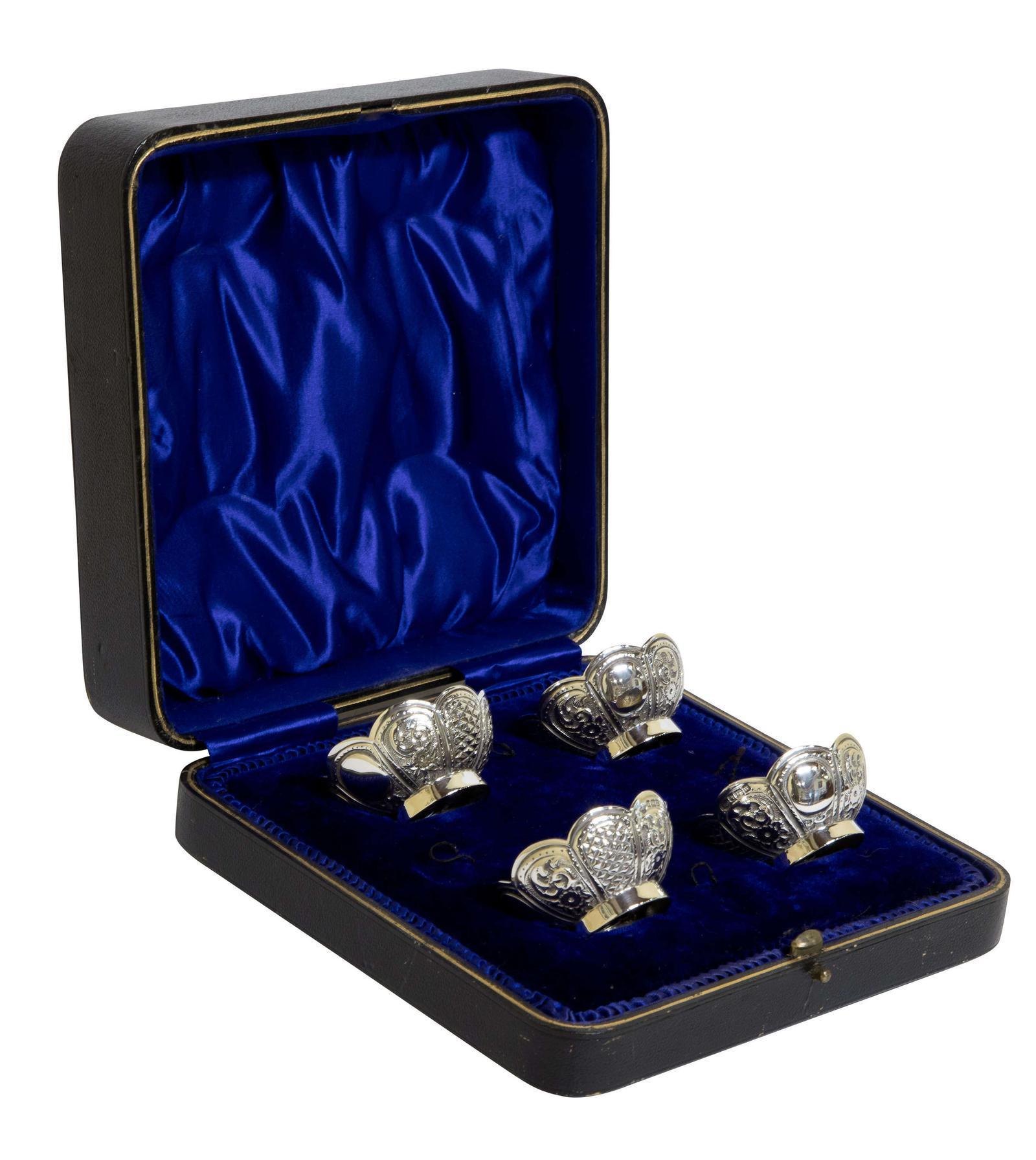 Set of 4 Salts Marked for J.R. Sheffield 1905, Cased with no Spoons (1 of 8)