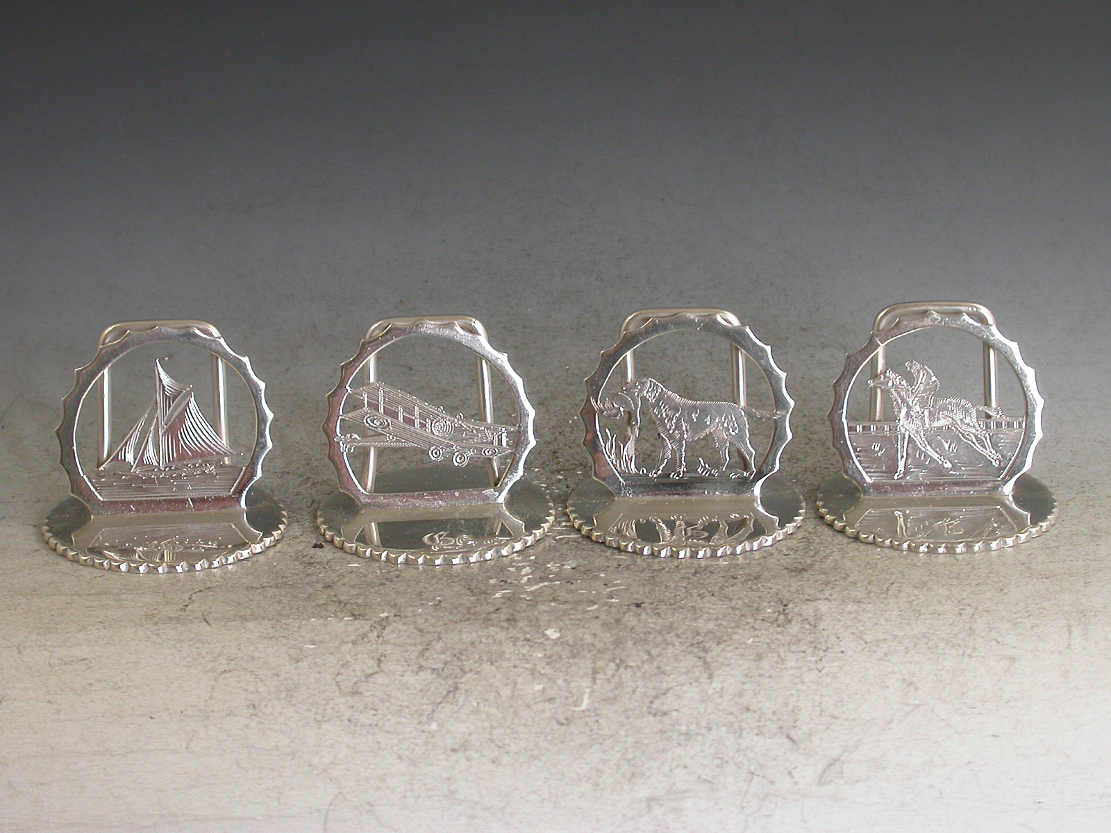 Set of 4 Silver 'Sporting Pursuits' Menu Holders by A.Wilcox, Birmingham, 1932
