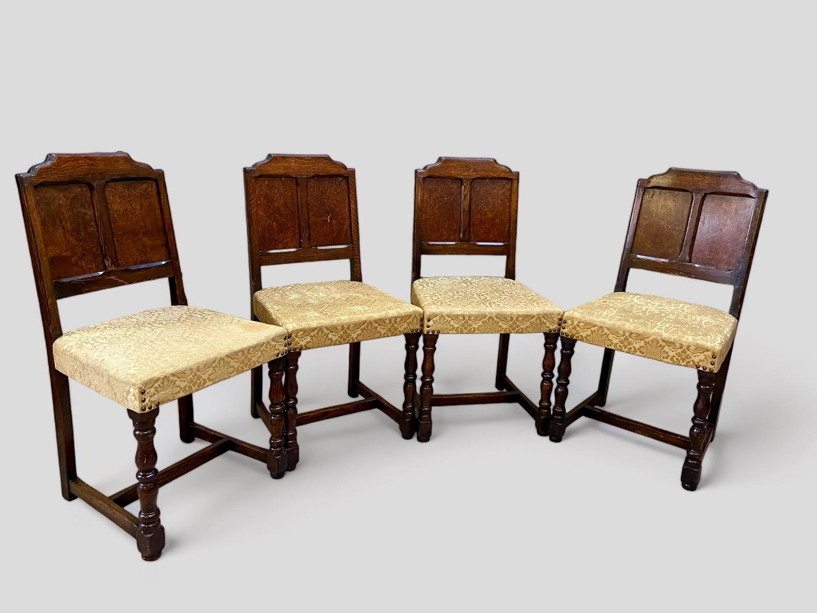 Set of 4 Upholstered Gothic Revival Oak Refectory Chairs - Made in England c.1940