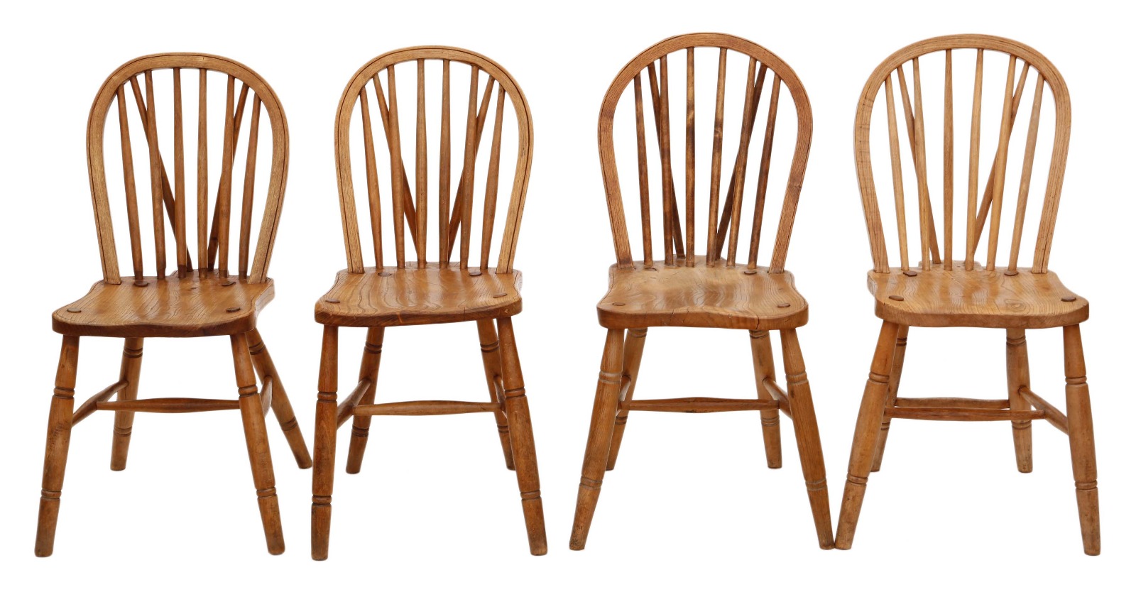 Set of 4 Victorian Ash, Elm & Beech Kitchen Dining Chairs c.1900