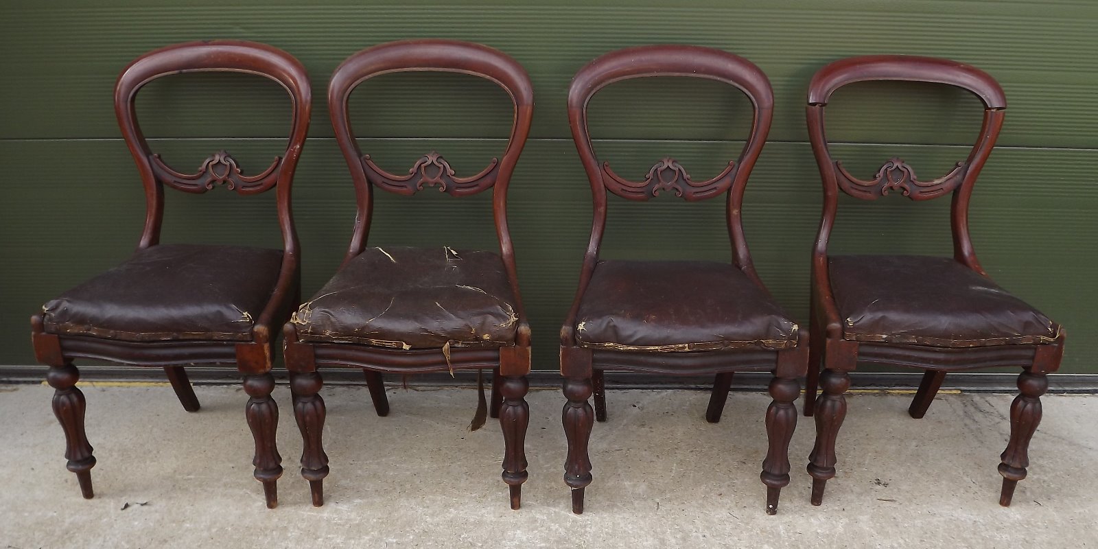 Set of 4 Victorian Balloon-Back Chairs (need tlc)