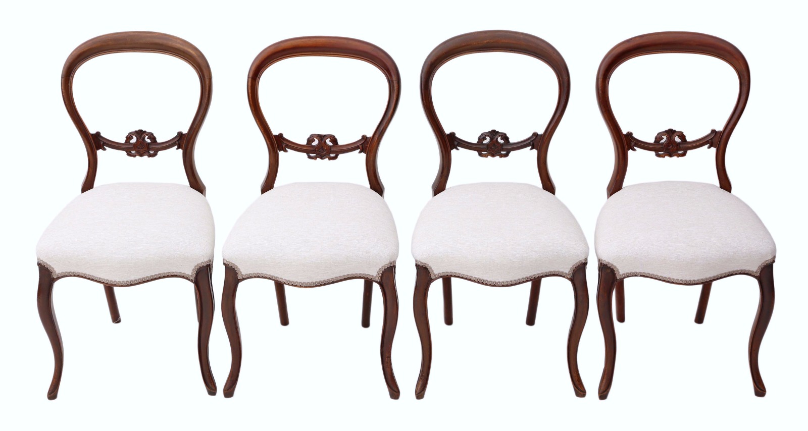 Set of 4 Victorian Balloon Back Walnut Dining Chairs