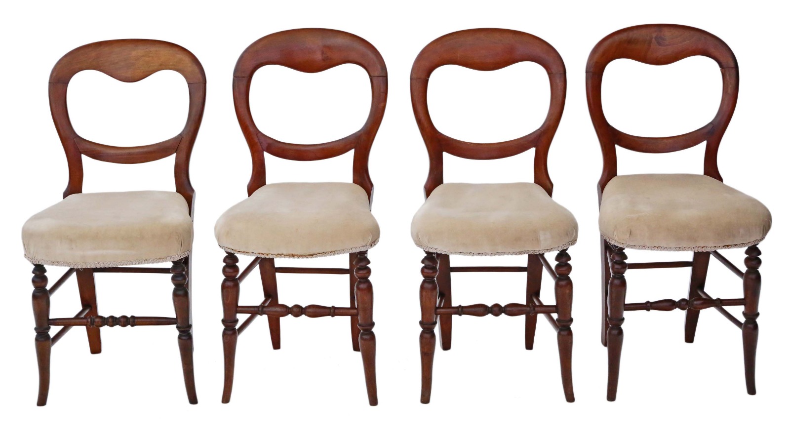 Set of 4 Victorian Beech Balloon Back Dining Chairs C.1890
