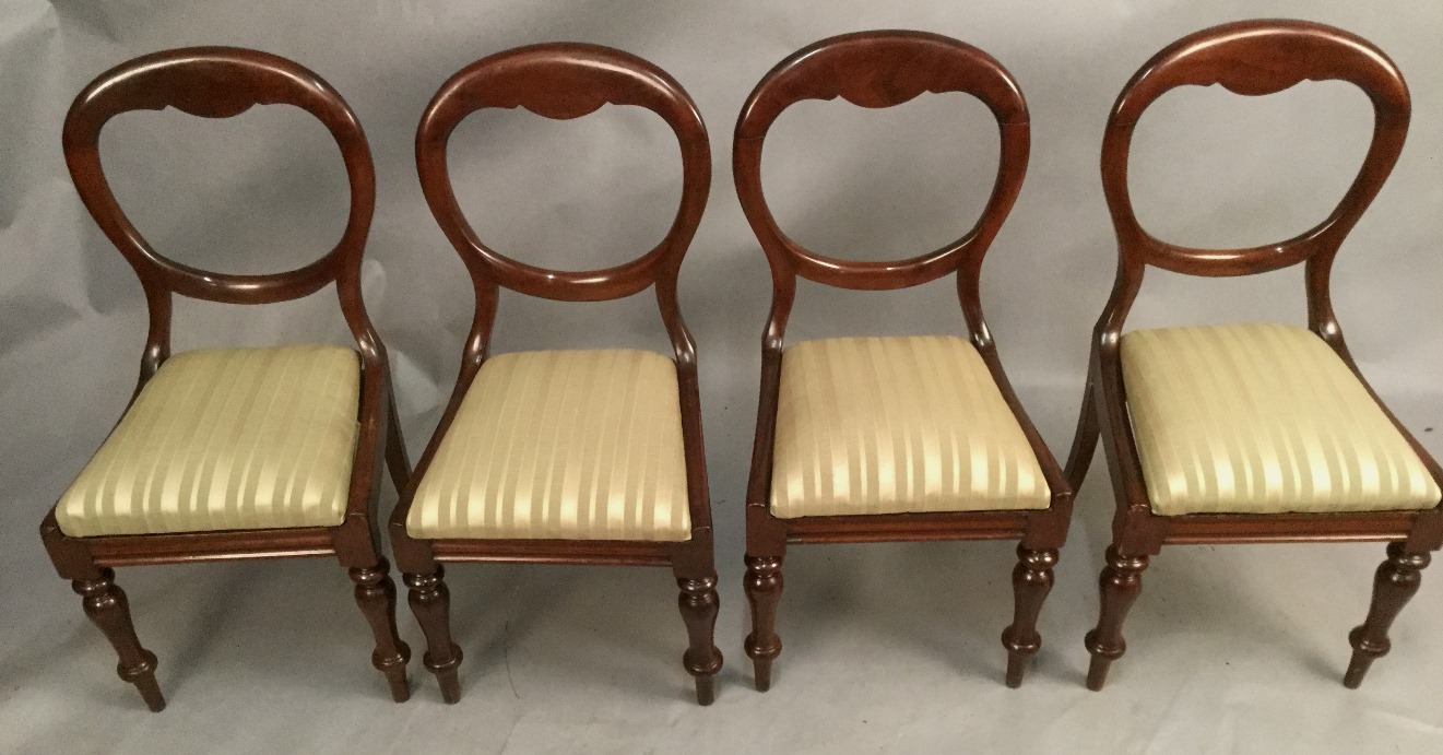 Set of 4 Victorian Mahogany Balloon Back Dining Chairs c.1860