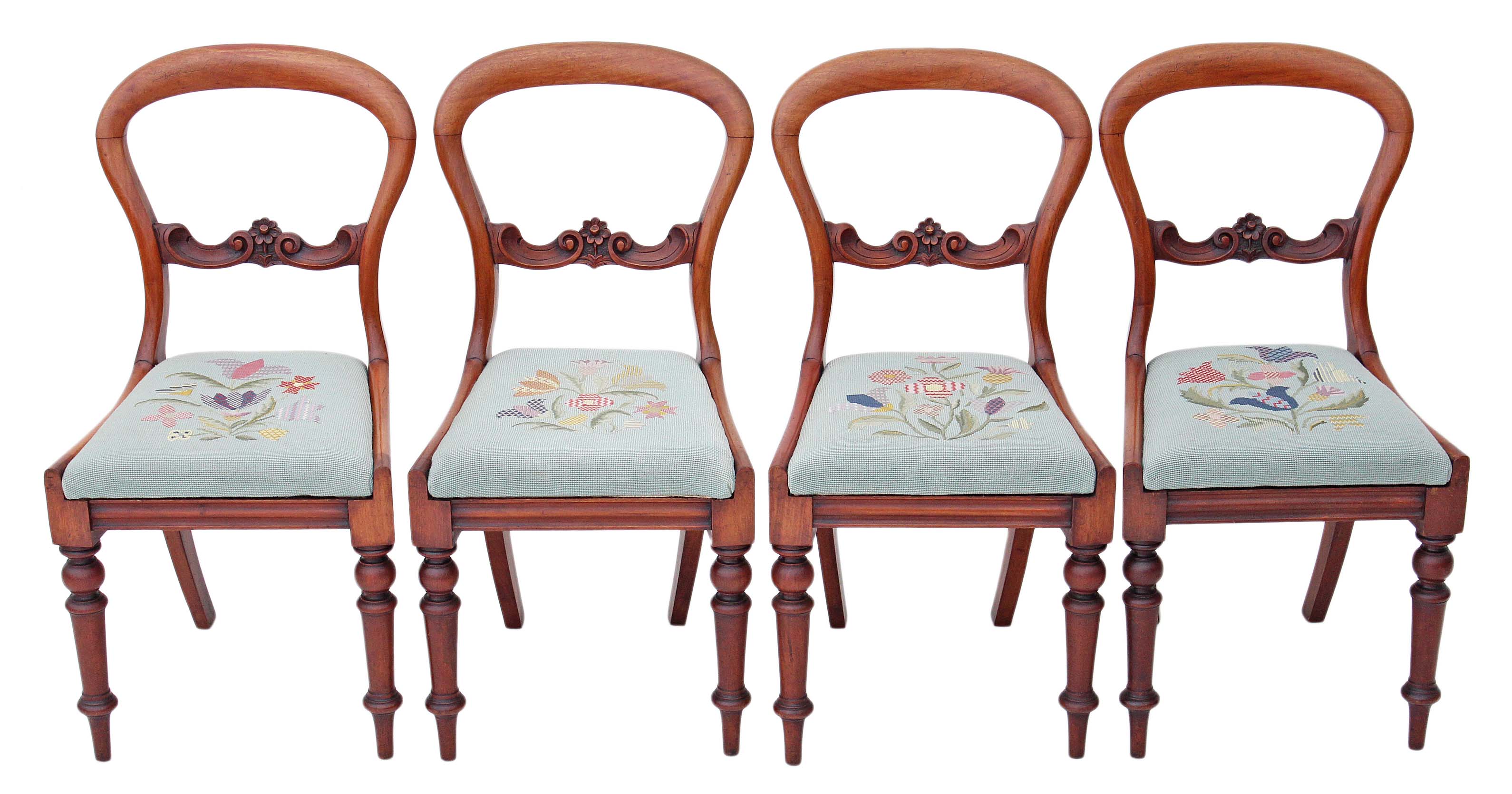 Set of 4 Victorian Mahogany Dining Chairs / Balloon Back Chairs