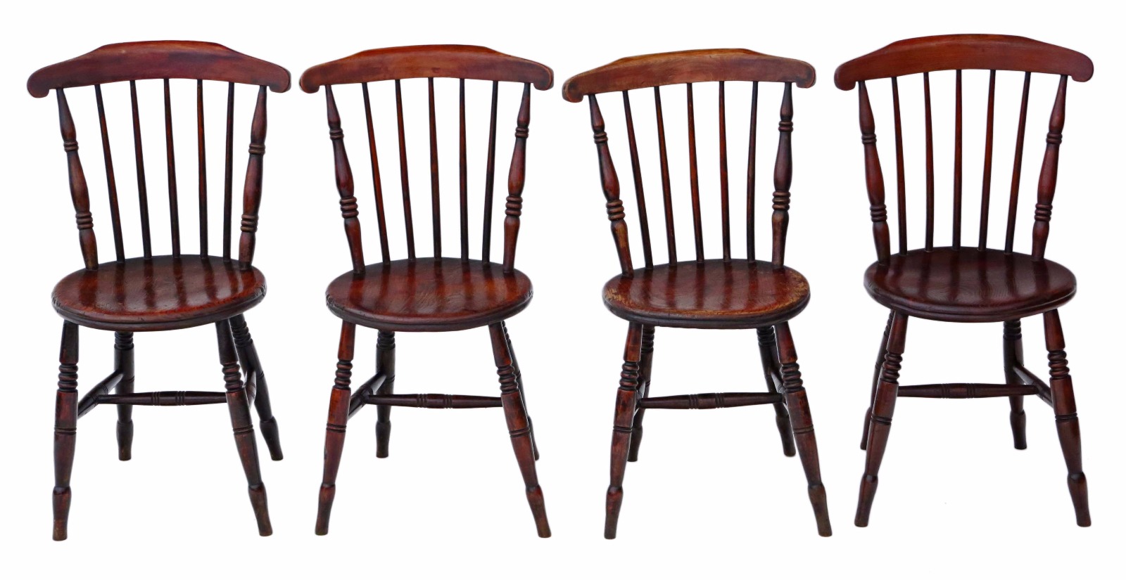 Set of 4 Victorian Penny Windsor Kitchen Dining Chairs c.1890