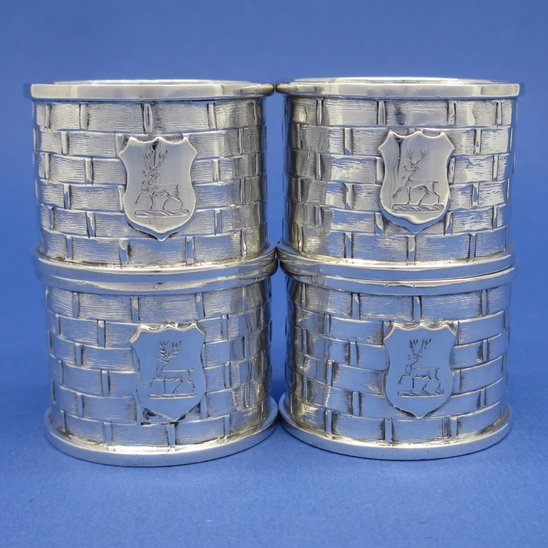 Set of 4 Victorian Silver Basket Weave Design Napkin Rings