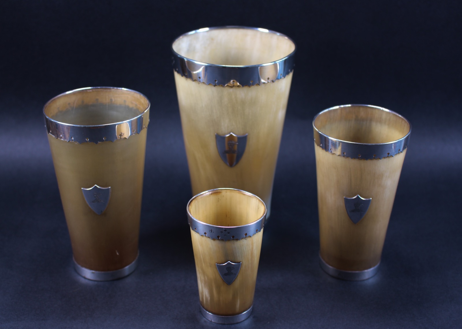 Set of 4 Victorian Silver Mounted Horn Beakers 1877