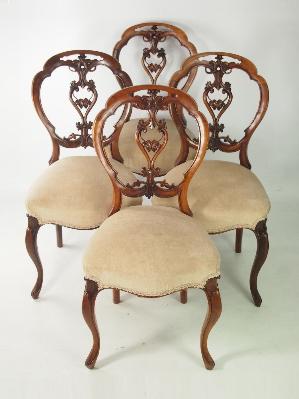 Set of 4 Victorian Walnut Balloon Back Chairs