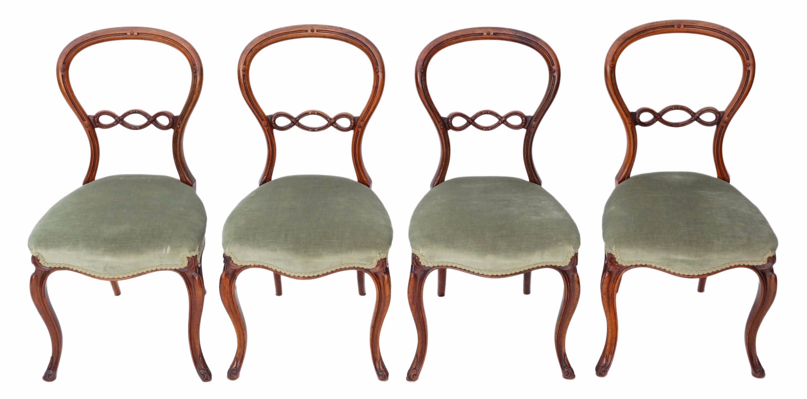 Set of 4 Victorian Walnut Balloon Back Dining Chairs C.1870