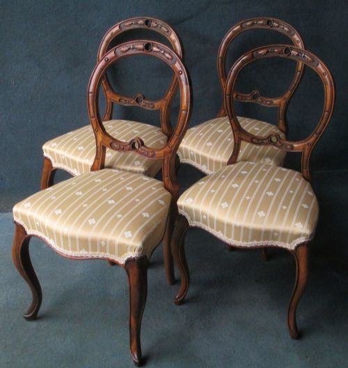 Set of 4 Victorian Walnut Balloon Back of Chairs C.1860