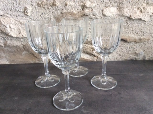 Set of 4 Vintage Early 20th Century French Lead Glass Claret, Red Wine Glasses in Perfect Order
