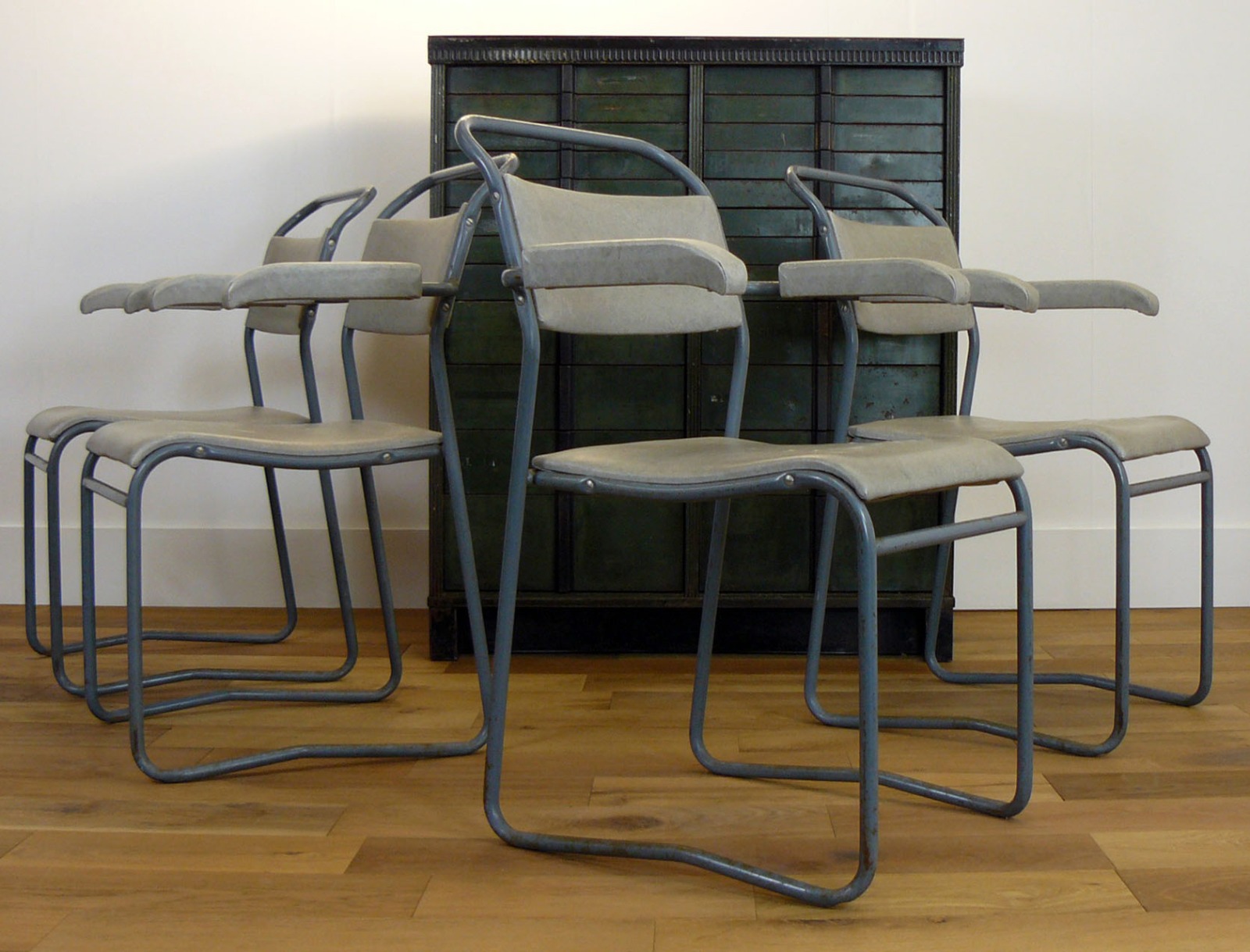 Set of 4 Vintage Industrial Cox Steel Stacking Armchairs