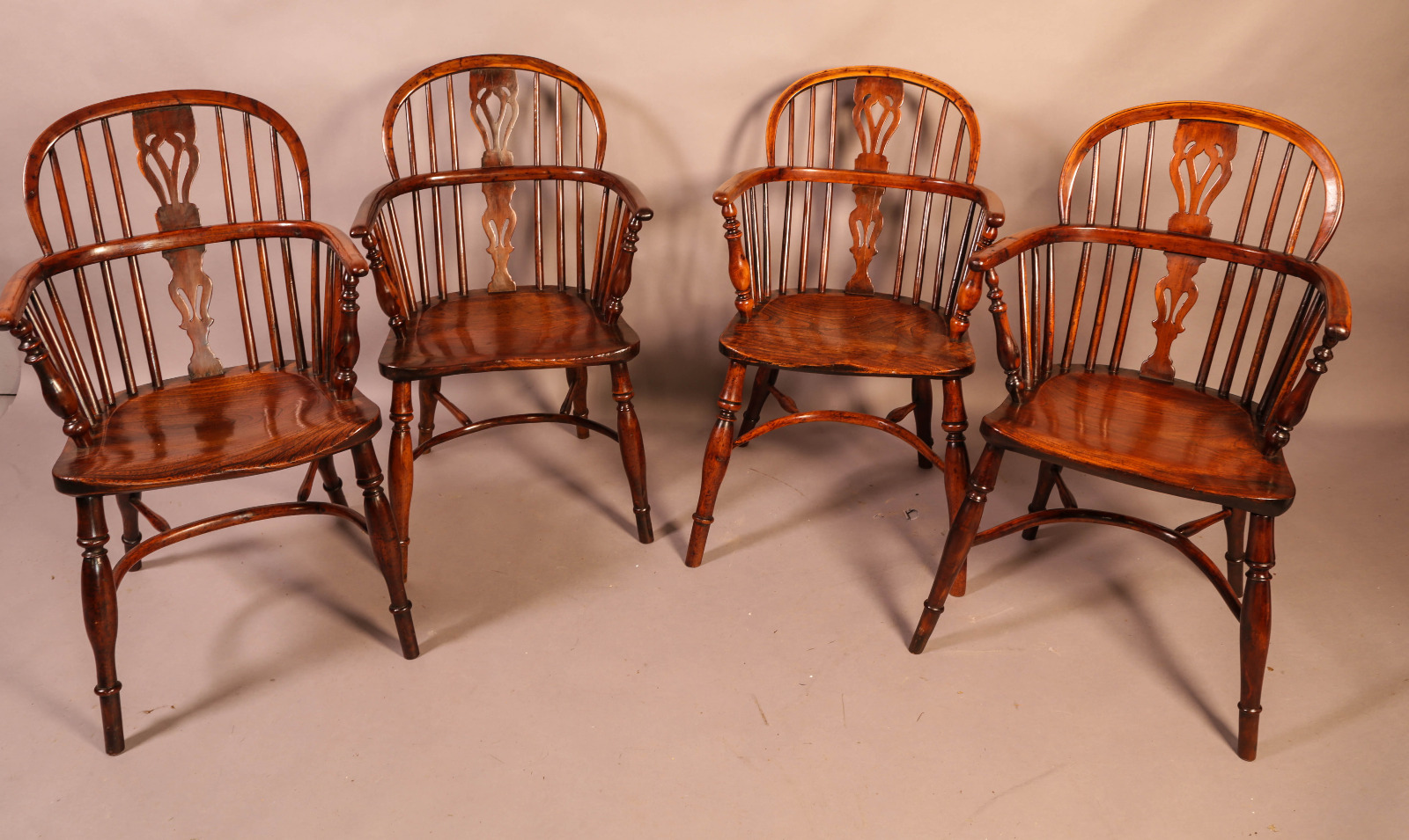 Set of 4 Yew Wood Windsor Chairs Nicholson Rockley