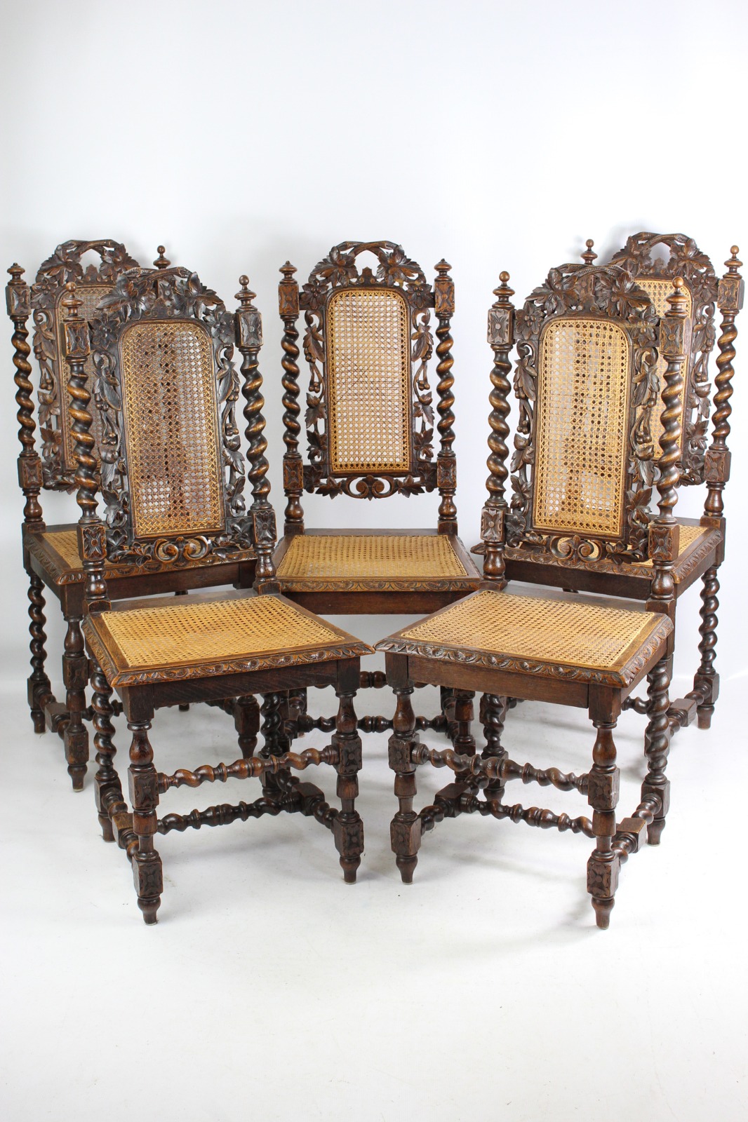 Set of 5 Antique Victorian Gothic Oak Chairs