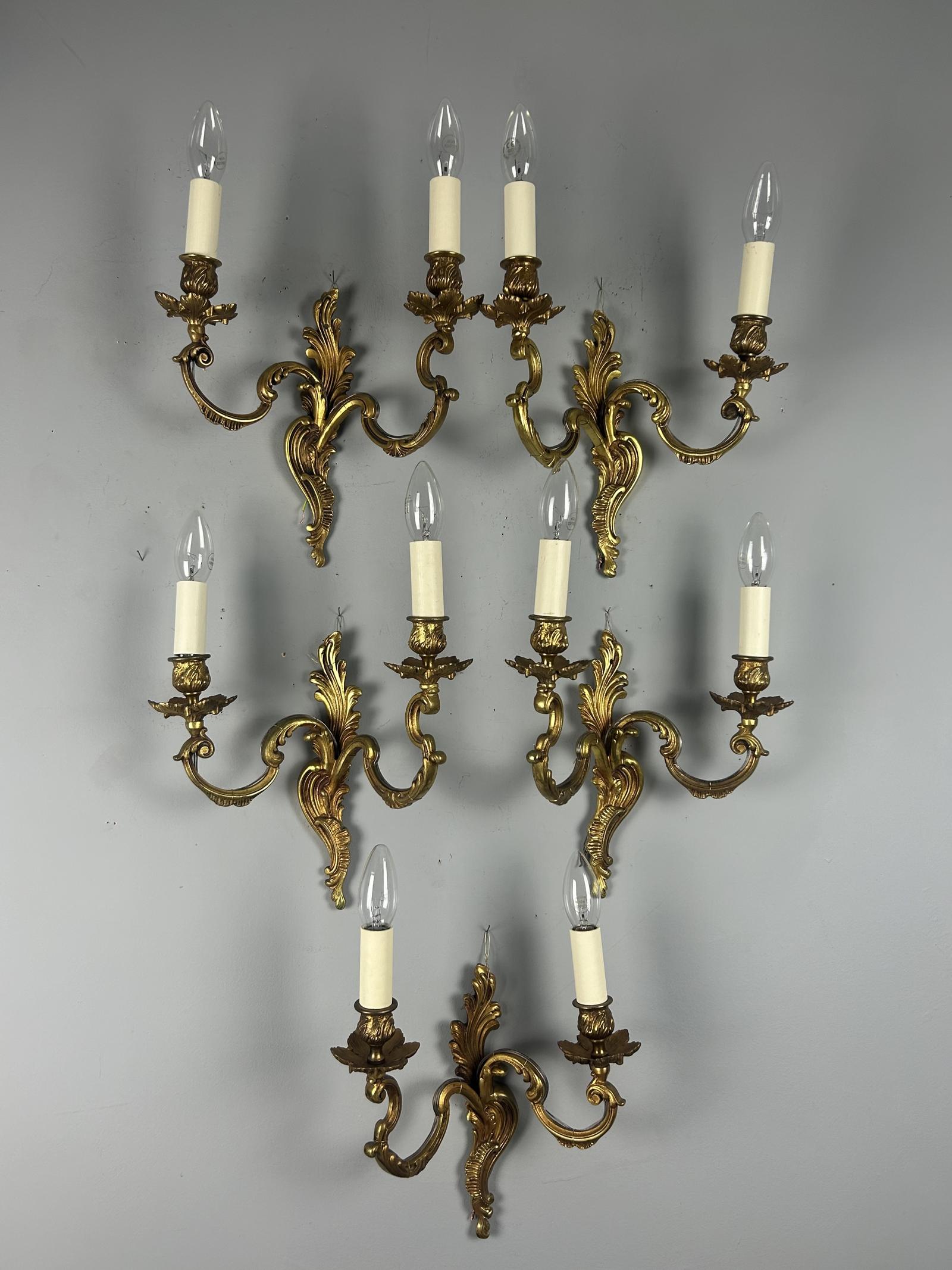 Set of 5 French Gilt Brass Wall Lights - Rewired