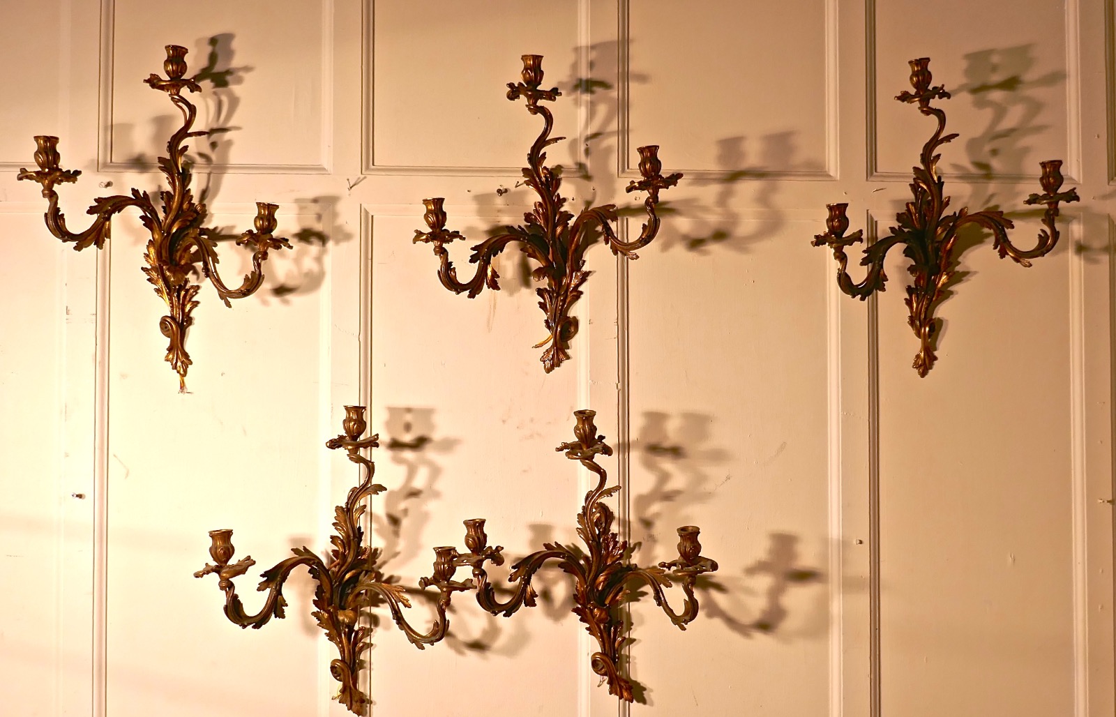Set of 5 Large Gilded Bronze Triple French Wall Sconces